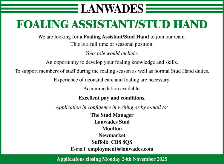 Please apply by email to: employment@lanwades.com