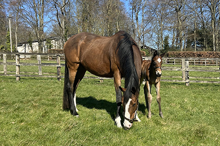 Group 1 winner LADY JANE DIGBY with her 10th foal, a very good colt by STUDY OF MAN. The mare is to date dam of 7 winners including Stakes Winner MADAME AMBASSADOR; she is also granddam of Stakes winners FRANCOPHONE and SUITE FRANCAISE, both of them by STUDY OF MAN.
